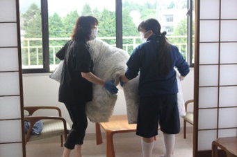 手際よく布団敷きをしていて、職員の手直しも必要ない程の仕上がりでした。