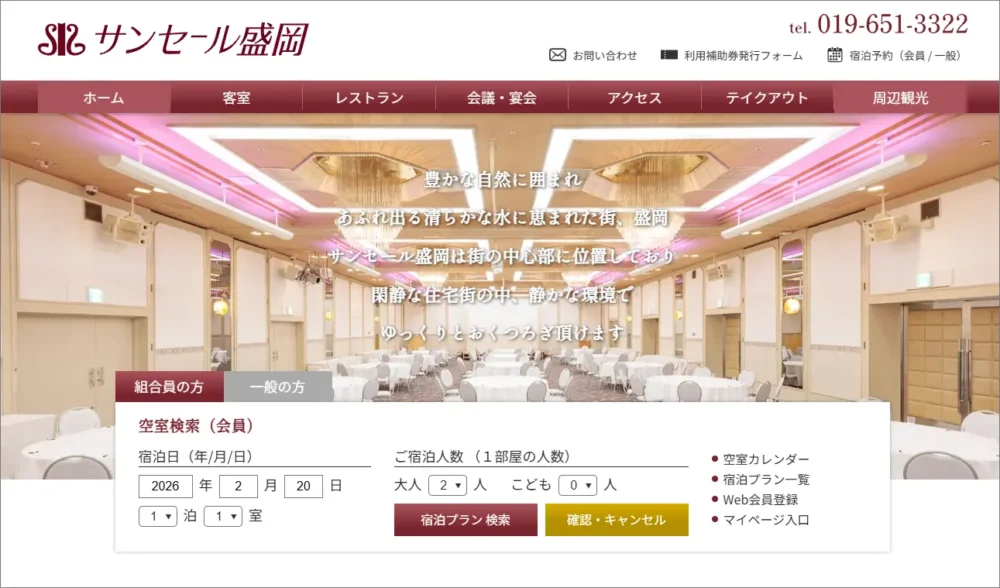 宿泊・会議室・宴会・ランチなどの各サービス情報をスムーズにご覧いただける構成へと改善しております。
